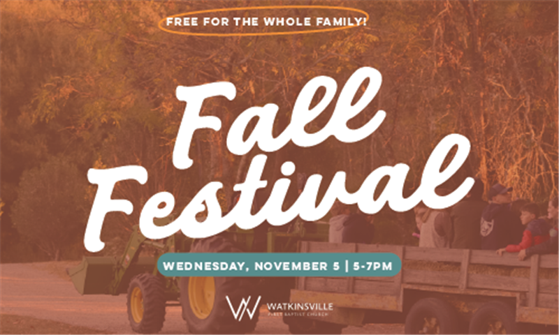 Fall Festival is on November 5th from 5:00-7:00 pm this year! There will be food trucks and fall themed games for all kids from preschool to middle school to enjoy. Watkinsville FBC Fall Festival is a free event for families in our whole community! Come dressed in your favorite costume and join us for games and activities for preschool through middle school! Want to bring a cake for the Cake Walk? Sign up here: